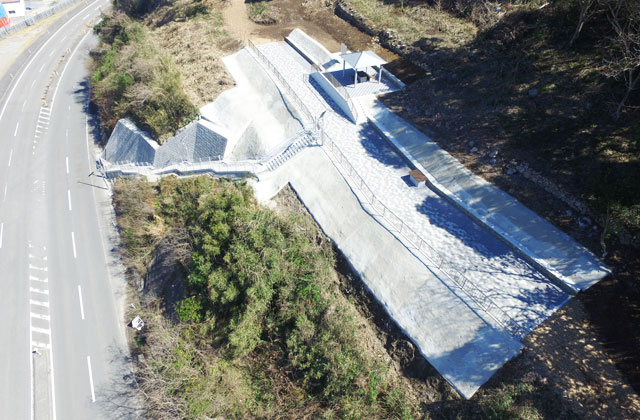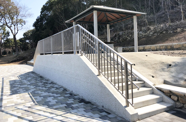 日向市の細島港に津波避難広場を整備する工事です。 まず広場を造成するところから始まり、防災施設や四阿を整備しました。 海に近い地区の災害時の備えとして、非常に重要な工事となりました。